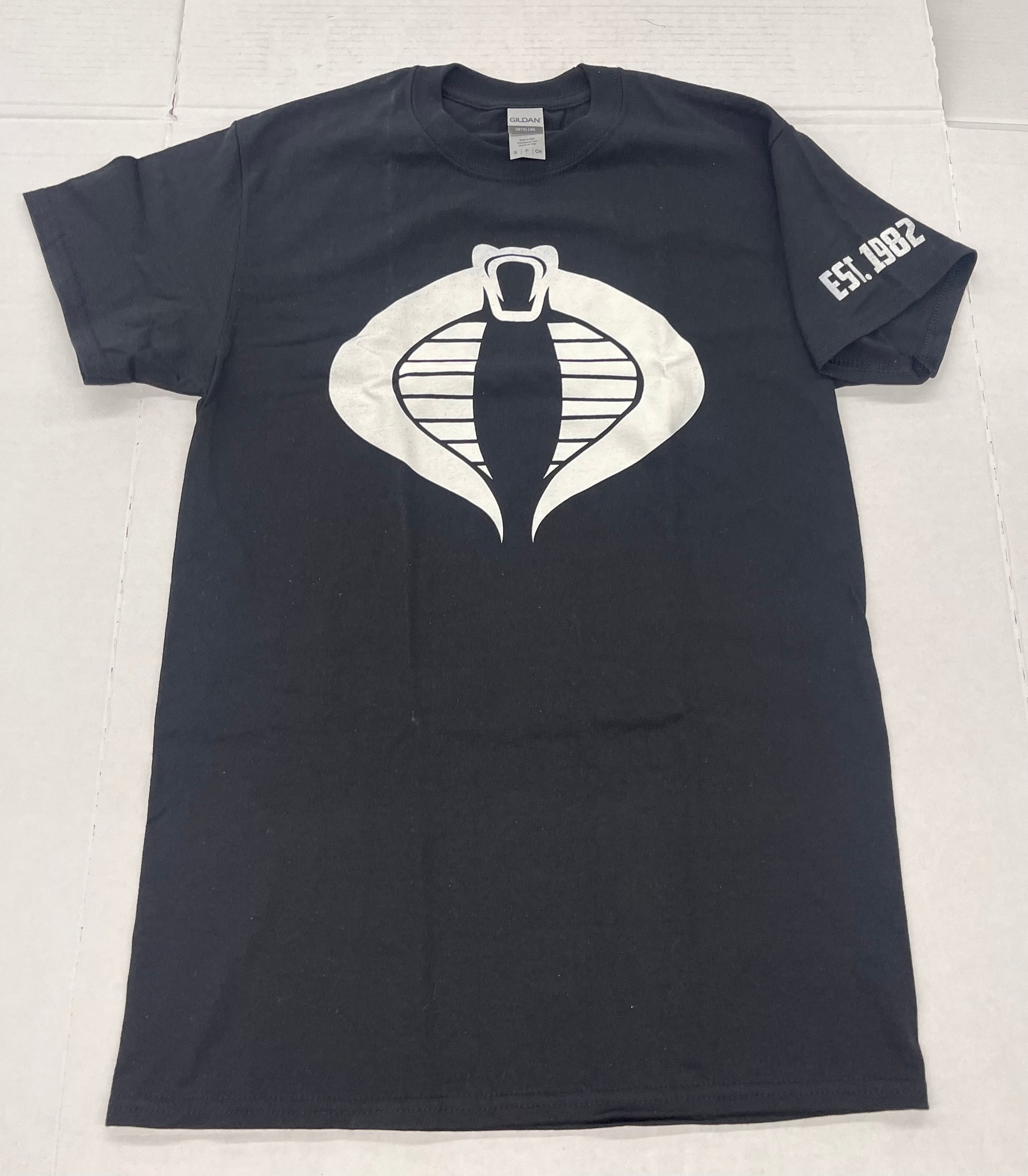 Black cobra white logo shirt. Back is blank.